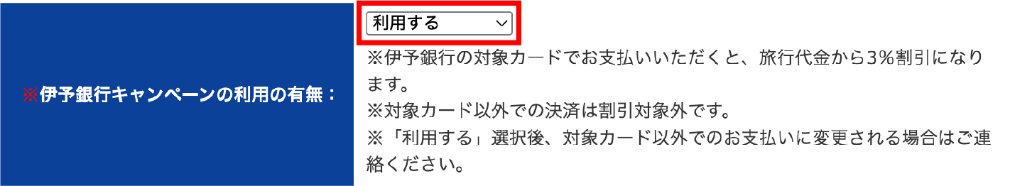 「伊予銀行キャンペーンの利用の有無」で「利用する」を必ず選択してください。