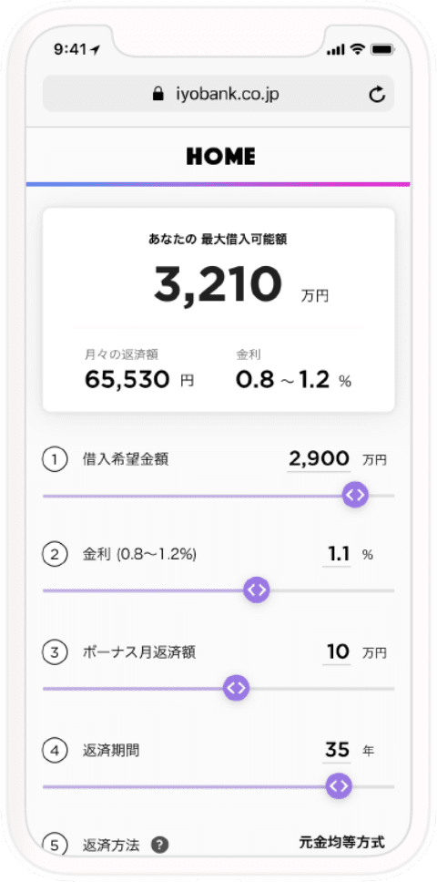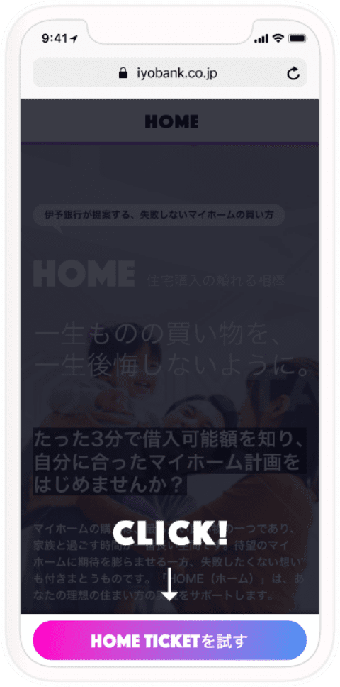 ※HOME TICKETは住宅ローンのシュミレーションサービスであり、実際の融資可否および融資条件等の決定には別途HOMEアプリによる審査が必要になります。