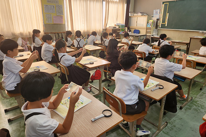 1日目は1年生55名を対象に、お金についてのクイズや紙幣を観察するプログラムを実施。お金に親しむ時間になりました。
