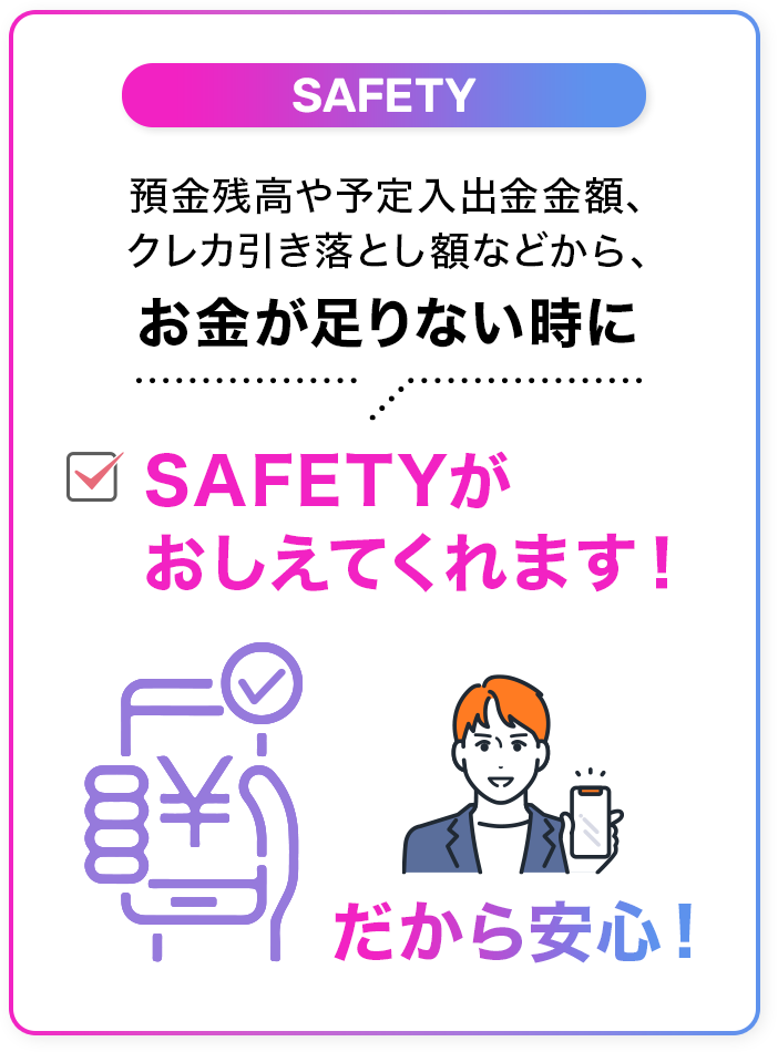 引き落としや残高不足は SAFETYが