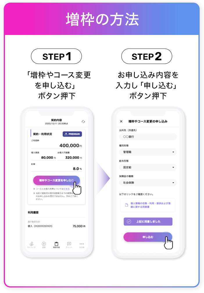 お借り入れもご返済も増枠も アプリで簡単!