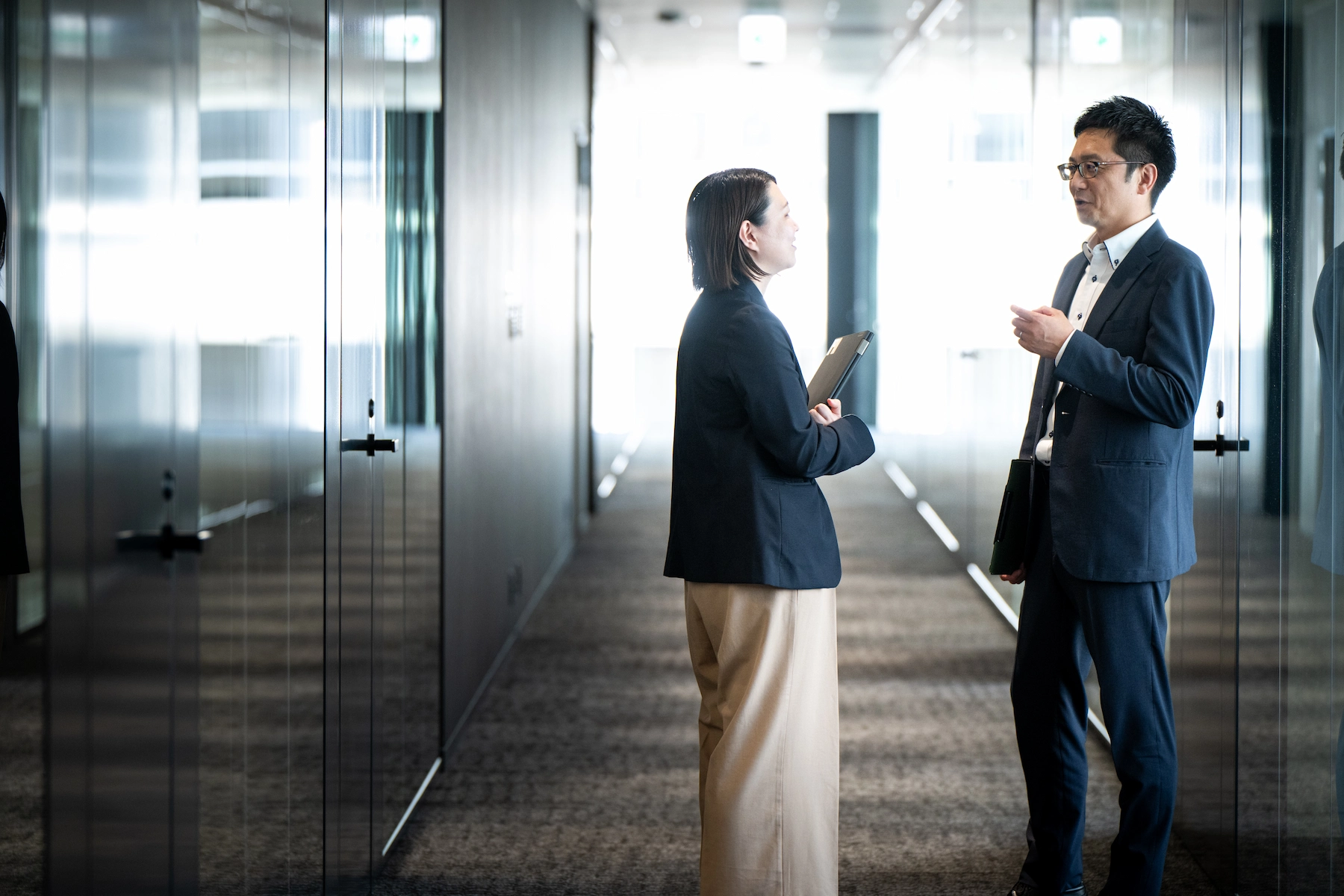 AGENTの事務局としてプロジェクトの運営に携わるスタッフ、営業店でAGENTをお客さまにご提案するスタッフ、さらにデジタル技術を使った業務改善コンサルティングを提供するグループ会社のトップ、三者三様の立場からDXへの思いを語ります。