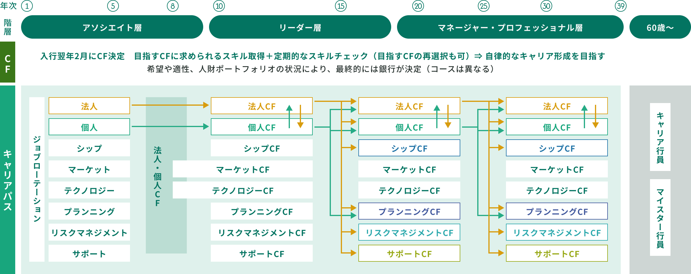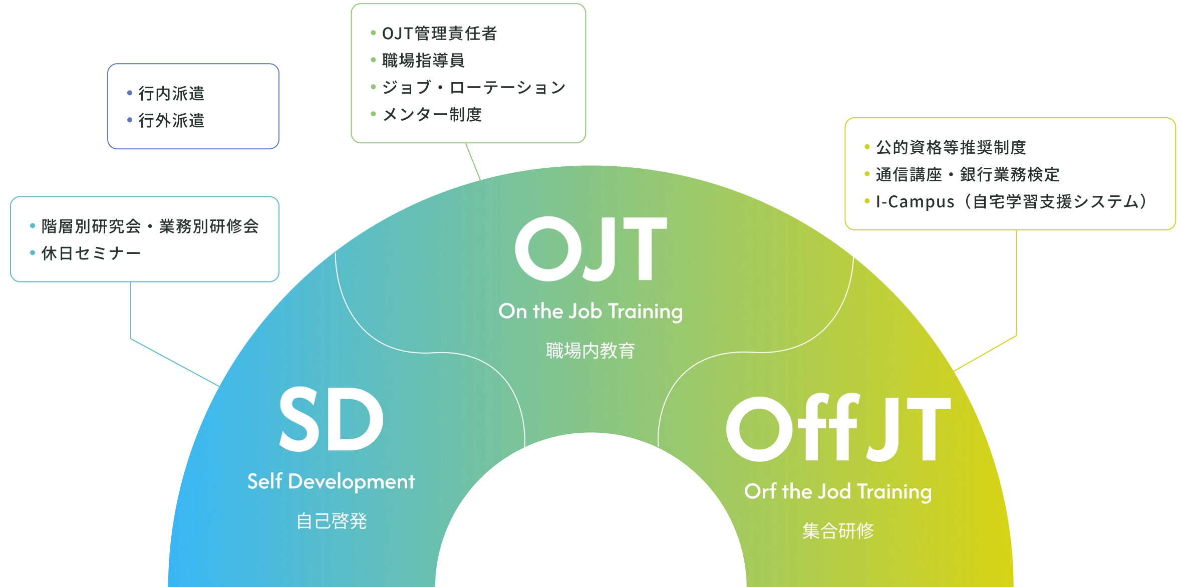 伊予銀行には「総合職」「専門職」「オフィスコース」の3つのコースがあります。「もっと専門性を高めたい」「出産や育児、介護など家庭を大事にしたい」など、一人ひとりのビジョンやライフプランによってコースを変更することが可能です。